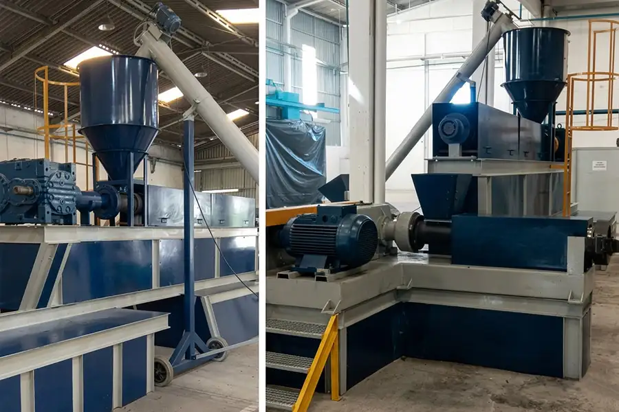 Possui capacidade de produzir entre 500 a 800kg de PP/PE por hora, dependendo do motor e inversor que será instalado.